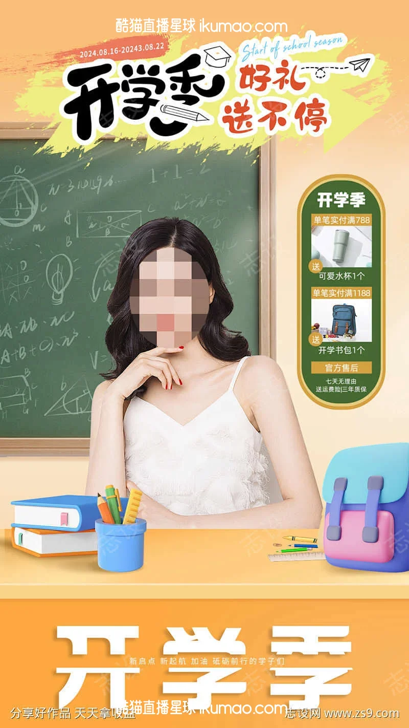 💛 这种风格特别适合文具、书包这类开学刚需产品的带货直播,场景化背景能快速建立用户对产品的使用联想,暖色调又能营造轻松的购物氛围,转化率应该会很稳。