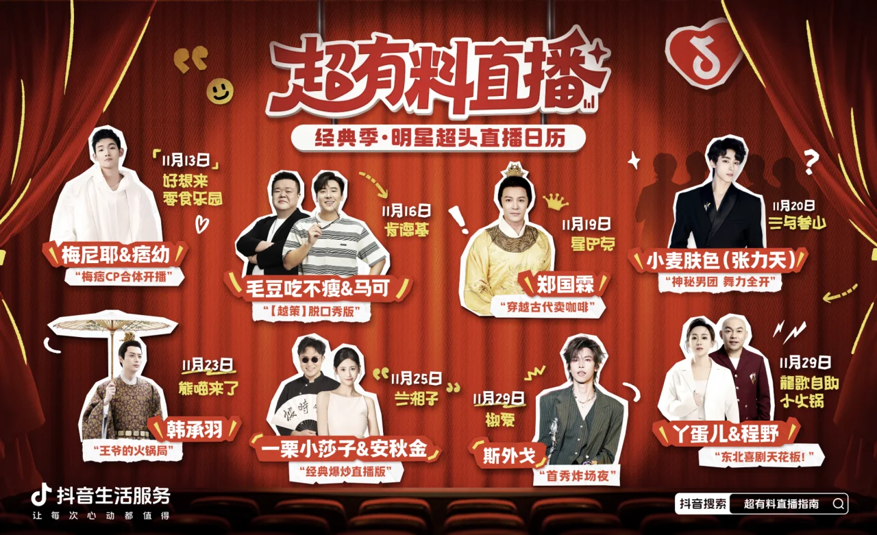 这些都是抖音生活服务首个内容IP“超有料直播”中的内容,首季“经典季”以“致敬、重现、创作经典”为主线,每场邀请明星主播担任“经典主理人”,通过主题互动呈现高可看性的直播内容。