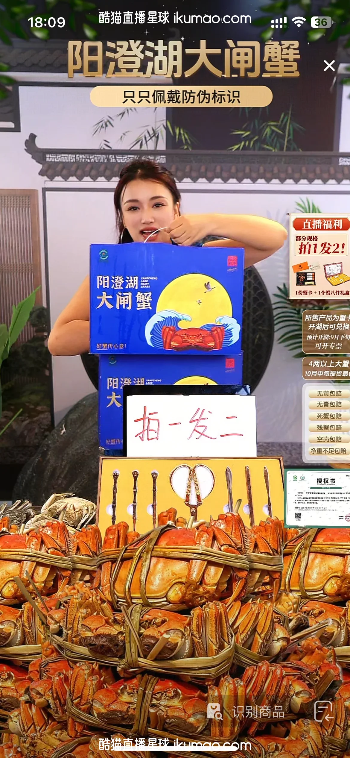 🌙 跟那些花里胡哨的生鲜直播间比,这个太有质感了。没有多余的装饰,证书、奖牌、大闸蟹产品摆放得整整齐齐,连礼盒都透着高级感,不像有些直播间乱糟糟的,看着就信得过。