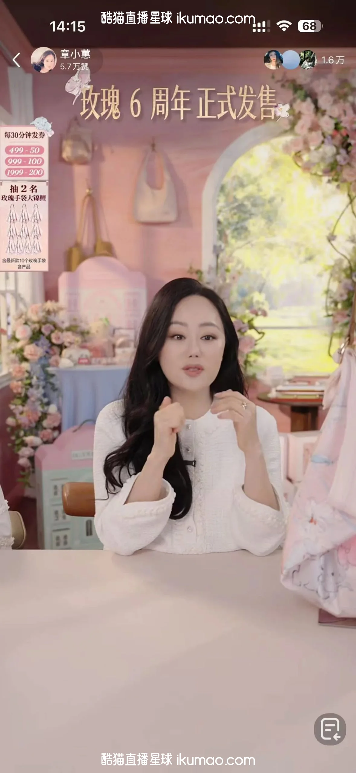 🍰 这种设计其实很聪明,用低饱和度的粉色和马卡龙色,既符合‘玫瑰6周年’的主题,又让产品(比如手袋)显得更高级,观众看着舒服,自然就想停留。