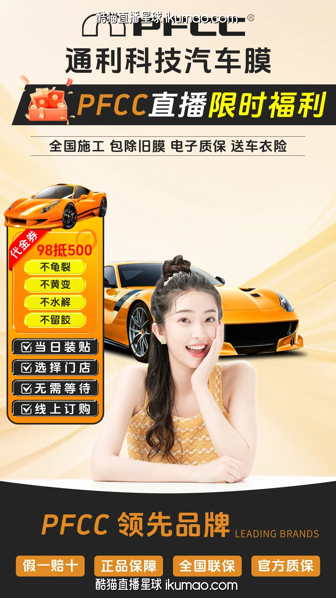 🥂 刷手机突然刷到这个直播间,第一反应是‘这汽车膜广告做得也太有质感了’,橙色跑车和背景的渐变呼应,瞬间把注意力拉过来,不像那些杂乱的直播背景,看着就舒服。