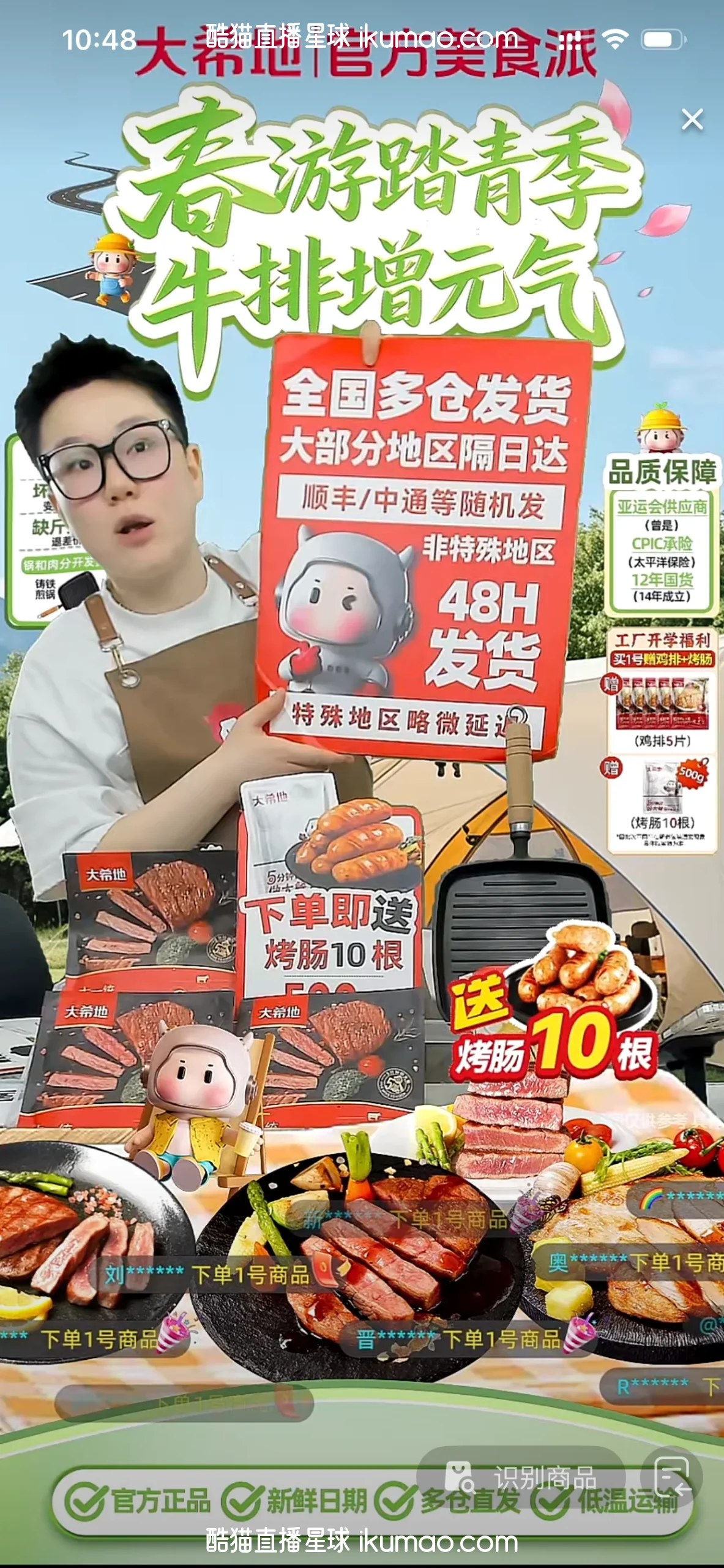 🌷 最戳我的是背景里的帐篷和烤盘,一下子就把春游的氛围拉满了,不像有些直播间背景空荡荡的,这个有场景感,看着就想跟着去野餐。