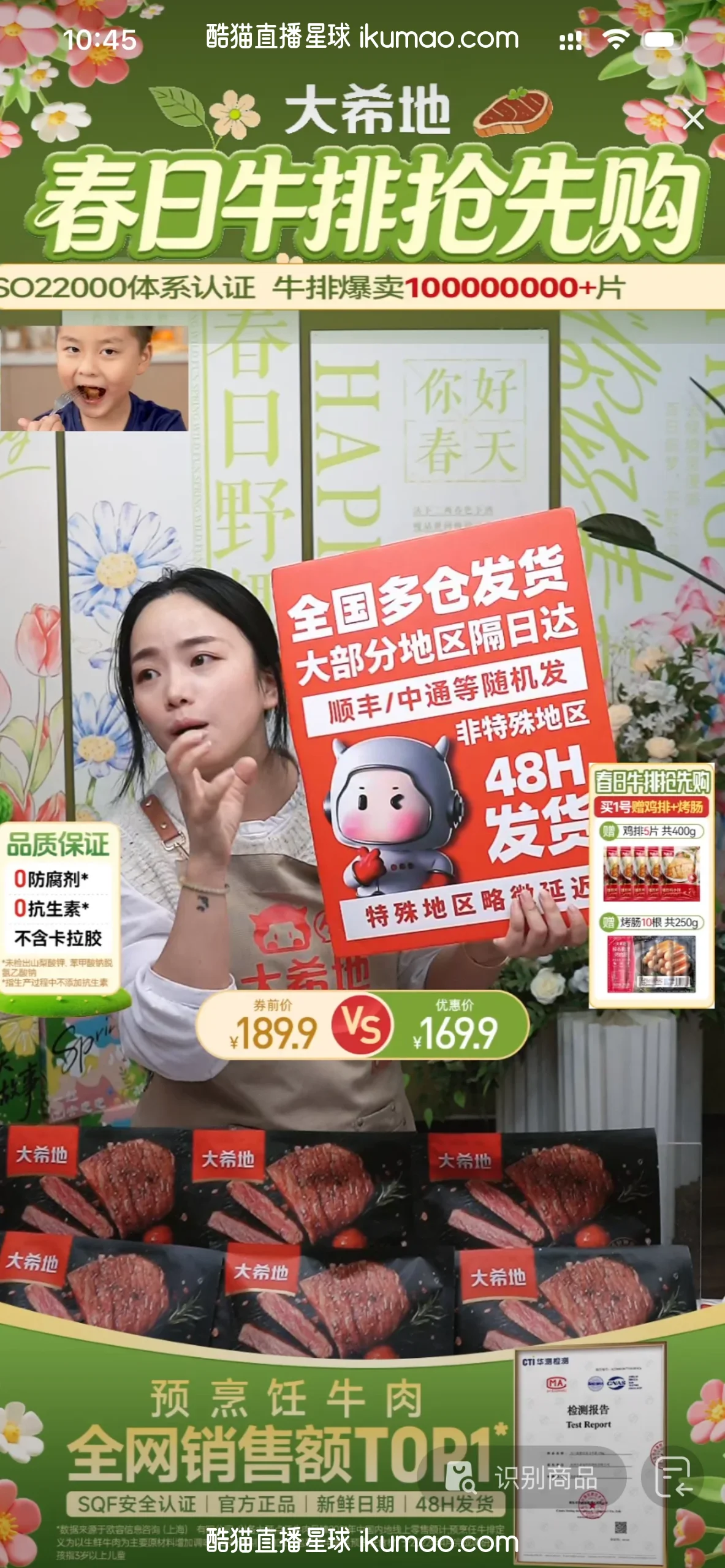 ♥️ 背景的春日野花和‘你好春天’文字一下子把氛围拉满了,不是那种硬广感,反而像走进春日花园,主播拿着发货牌的动作也很自然,没有刻意摆拍