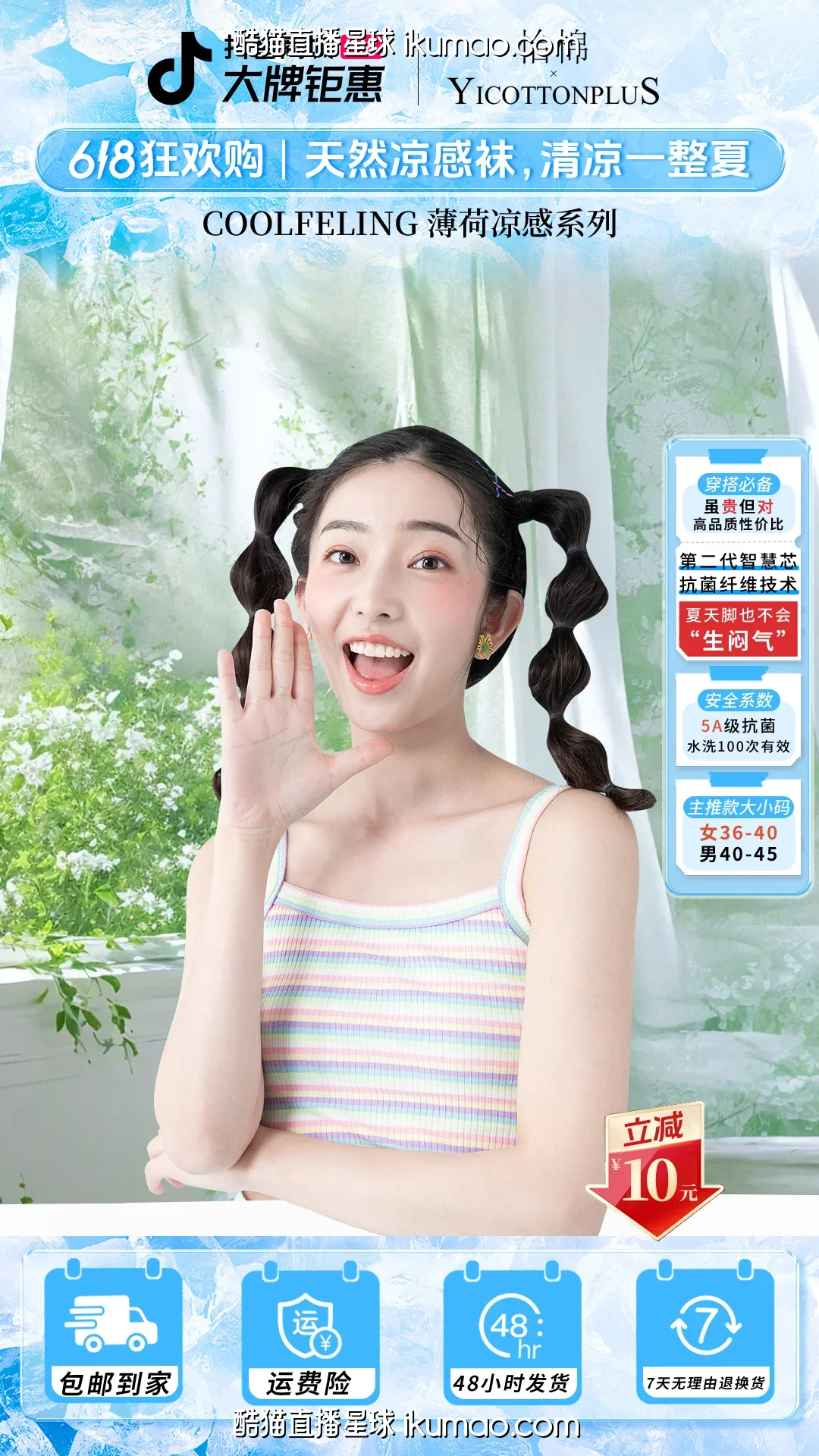 ✨ 接到这个凉感袜品的直播视觉需求时,我首先想到的是夏季品类常见的做法——要么堆砌冰块素材营造物理降温的假象,要么用高饱和度荧光色强行抓眼球。但这次想换个思路,毕竟产品本身主打的是天然凉感和抗菌科技,视觉上应该更克制一些,避免喧宾夺主掩盖了产品本身的质感。