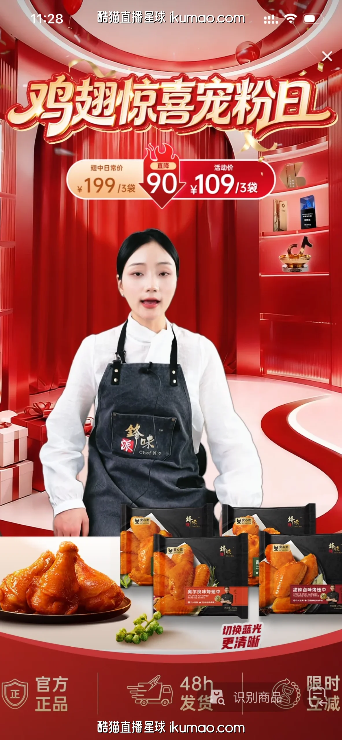 🔥 这样设计是因为食品直播需要快速抓住用户的注意力,红色系能提升紧迫感和食欲,而主视觉的安排让用户能快速识别产品,适合需要突出产品卖点的直播场景,比如美食测评或促销直播。