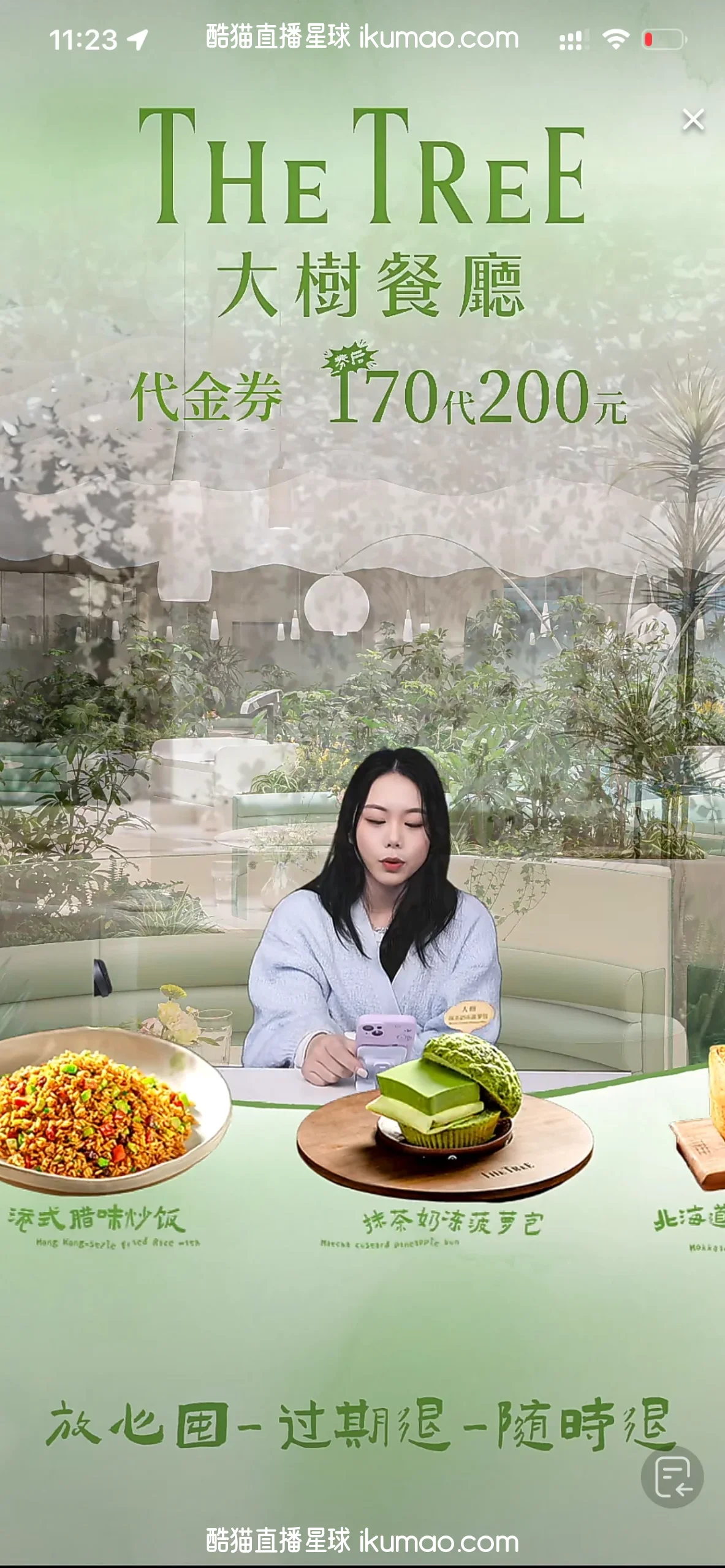 这直播间背景一整个戳中了我的审美,清新的绿调加上餐厅的实景,像走进了森林里的美食店,氛围感直接拉满!